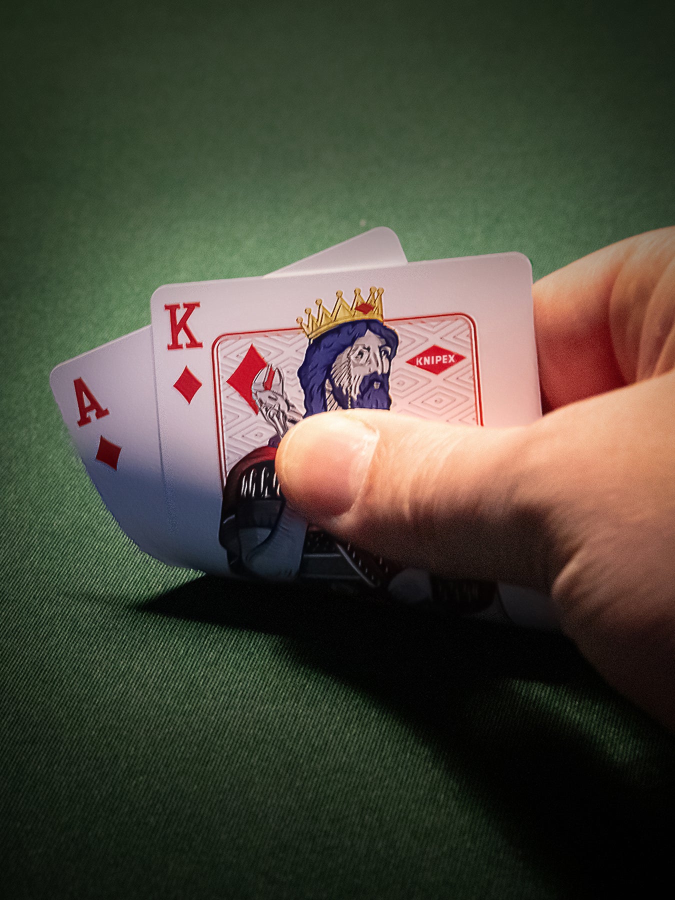 Während klassische Spielkarten aus Karton gefertigt werden, setzen wir auf langlebiges Premium-PVC. Das macht das KNIPEX Collector’s Deck mit seinen 55 liebevoll gestalteten Karten (52 Blatt + 3 Joker) besonders widerstandsfähig gegen Knicke, Feuchtigkeit und Abnutzung - für dauerhaftes Spielvergnügen selbst bei häufigem Mischen und intensiver Nutzung.